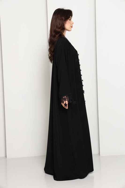 Designer Star Lace with Matching Headscarf Front Open Abaya