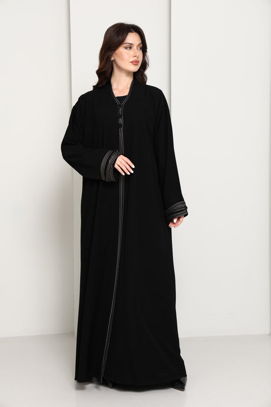 Premium Fabric Modern Abaya | Front Open A-Line Abaya with Stitch Detail