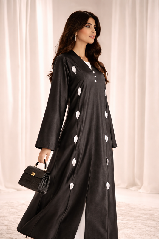 Victoria Satin Petal Detail Abaya I Classic Black
