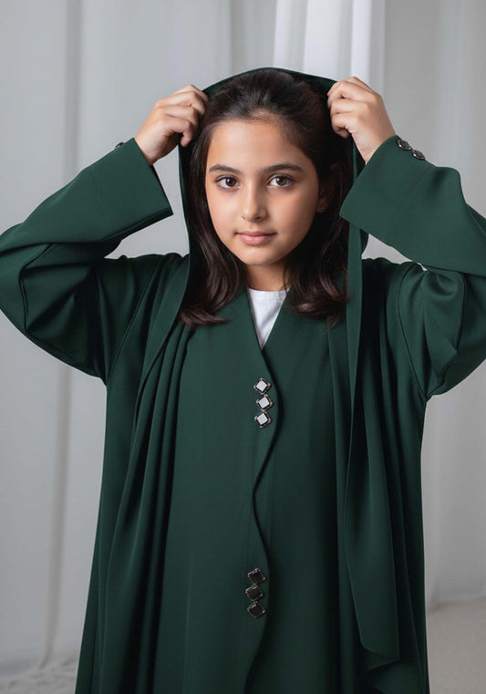 Kids Abaya With Sheila I Elegant Green Barbie Crepe Modest Wear for Girls