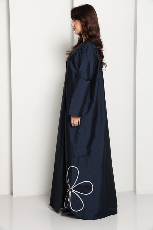 Navy Blue Jacquard Abaya with Elegant Self-Design