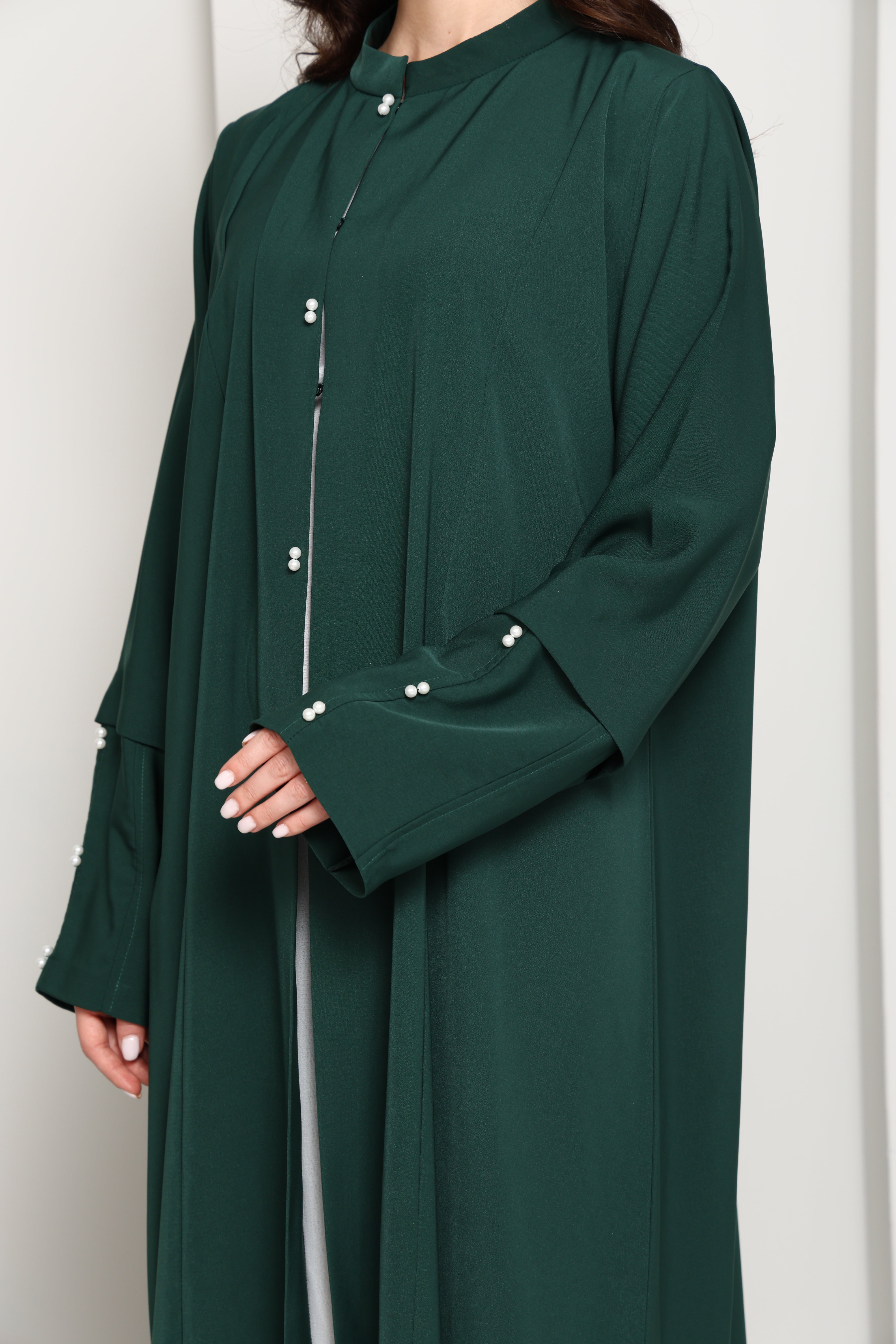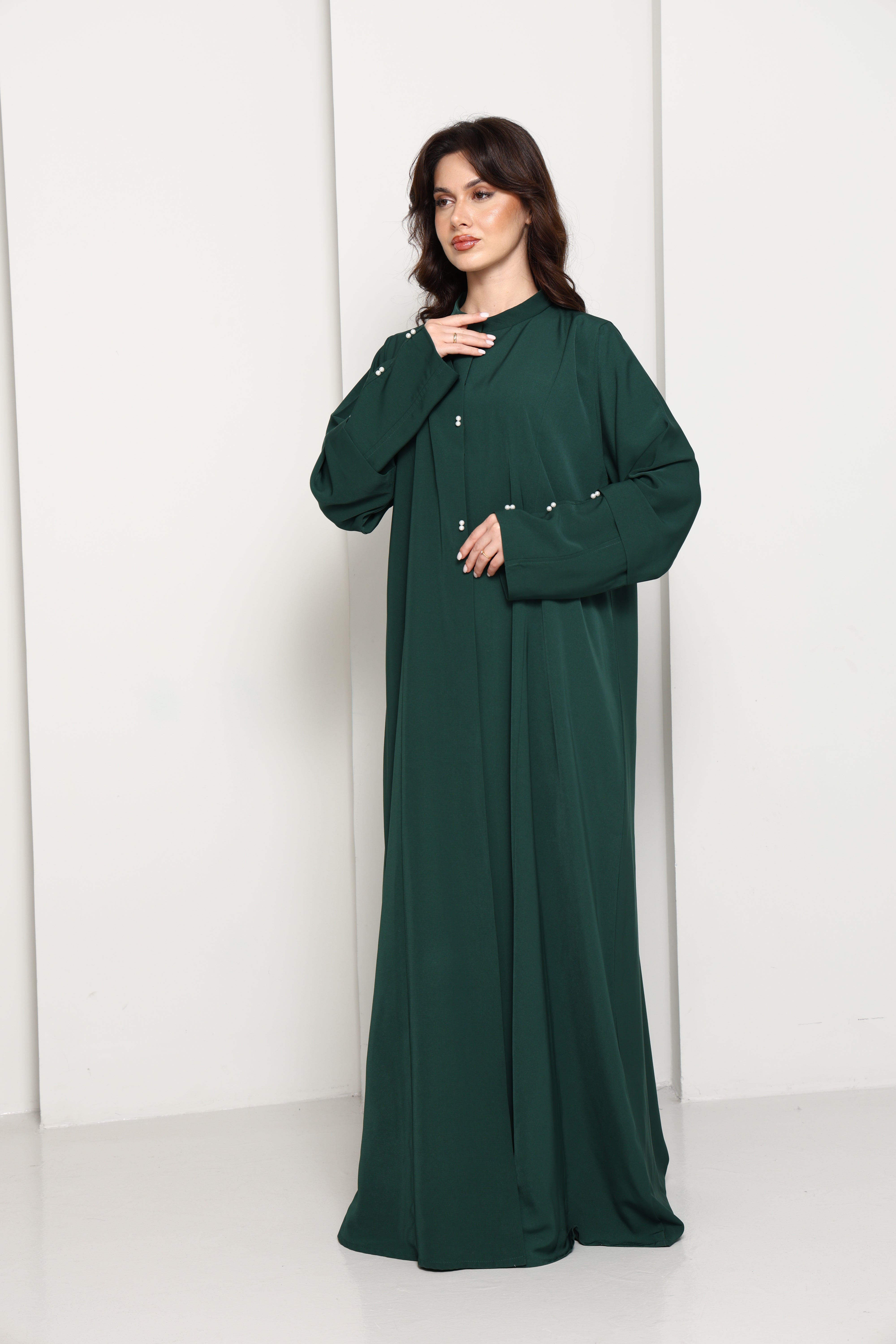 Experience the perfect balance of luxury and simplicity. This abaya is crafted from Premium Barbie Cobra fabric, known for its ultra-soft texture, rich drape, and wrinkle-resistant finish. The deep emerald green hue provides a regal look that is both timeless and modern.